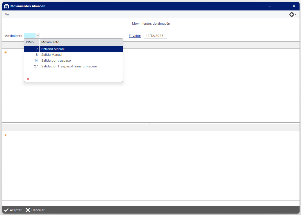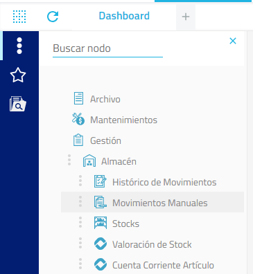 Esta opción, la tenemos disponible desde el menú Gestión-> Almacén -> Movimientos Manuales