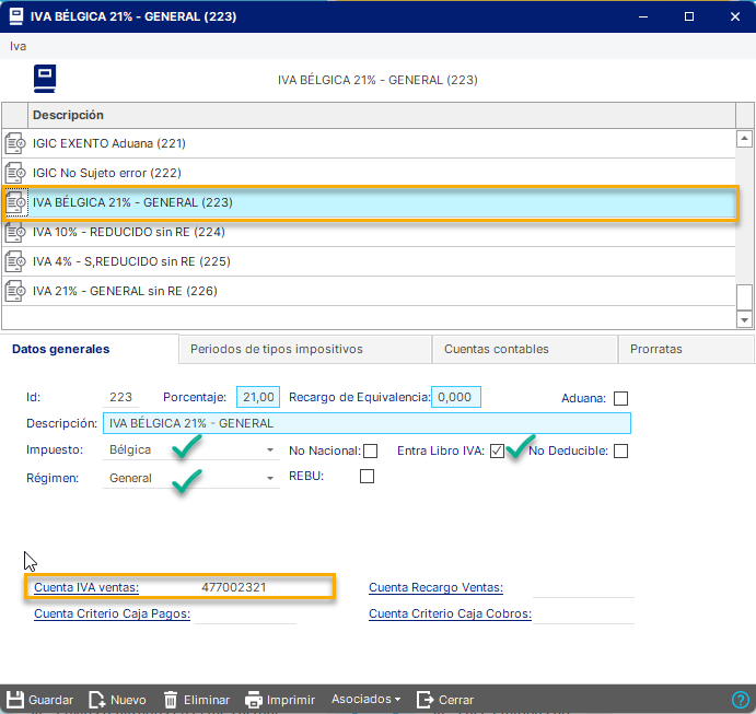 A continuación, os vamos indicar con capturas a través de un ejemplo, todos los pasos necesarios para configurar nuevos impuestos indirectos en la BBDD y cuestiones a tener en cuenta: