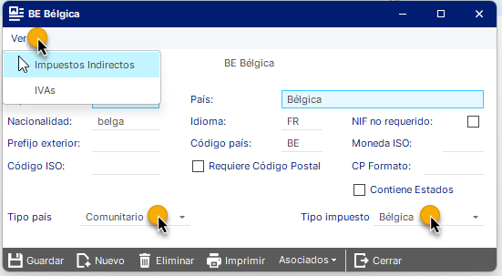 A los países con los que vayamos a trabajar de la unión europea hay que definirles el Tipo como comunitario y impuesto que debemos utilizar en dicho país.