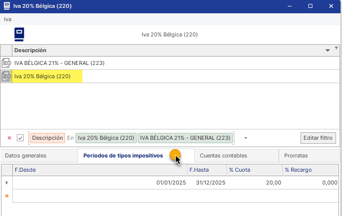 Es necesario incluir en que fechas trabaja el Iva declarado, al porcentaje indicado, para que el programa sepa que IVA aplicar.