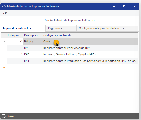 Los nuevos impuestos que creemos deberán tener un identificador negativo, ya que los positivos están reservados para el sistema.