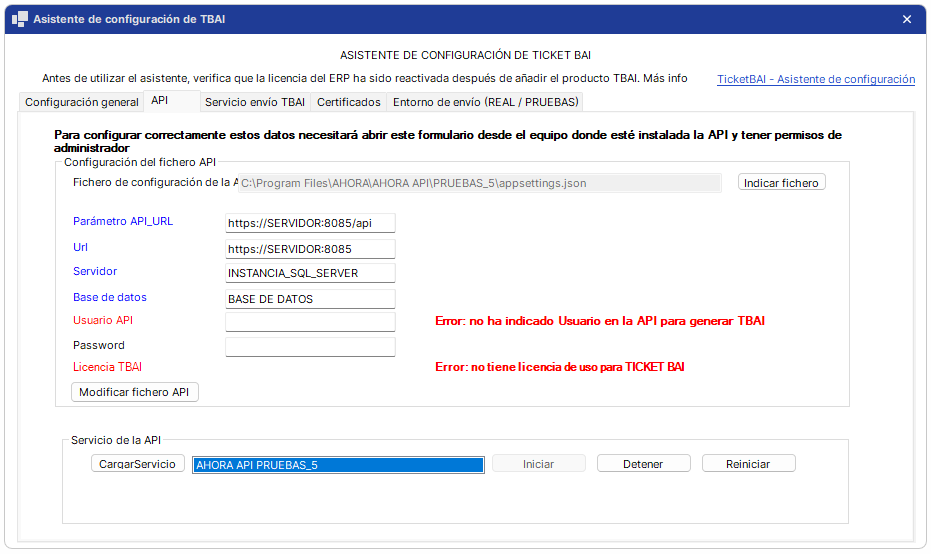 Fig. 5 - Asistente de configuración de Ticket BAI - Funcionamiento de la API