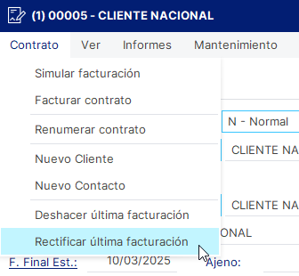 Desde la versión 5.0.0.76 se permite realizar una factura rectificativa para la última facturación realizada.