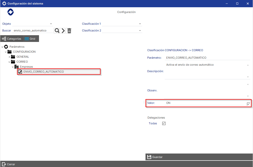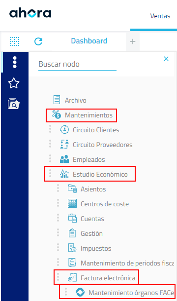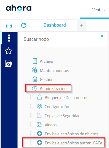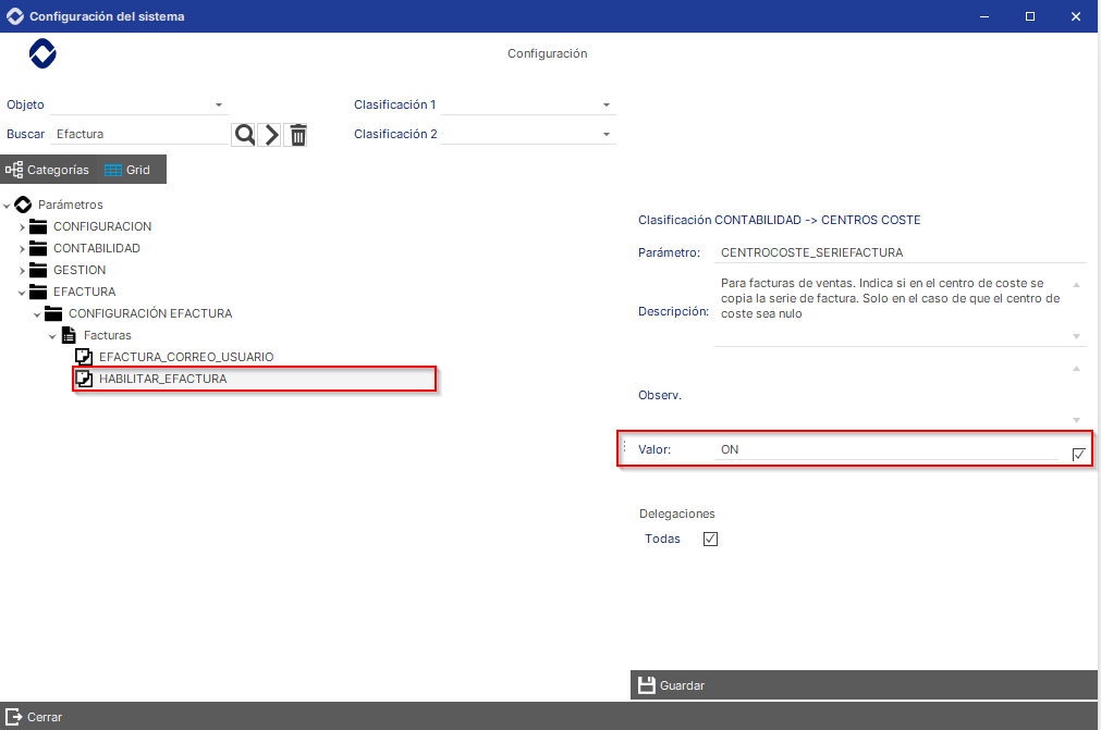 Al activar el último parámetro Efactura, ya nos saldrá el Nodo. El parámetro de la Efactura es de sesión, por lo que habrá que salir y entrar en el ERP de nuevo.
