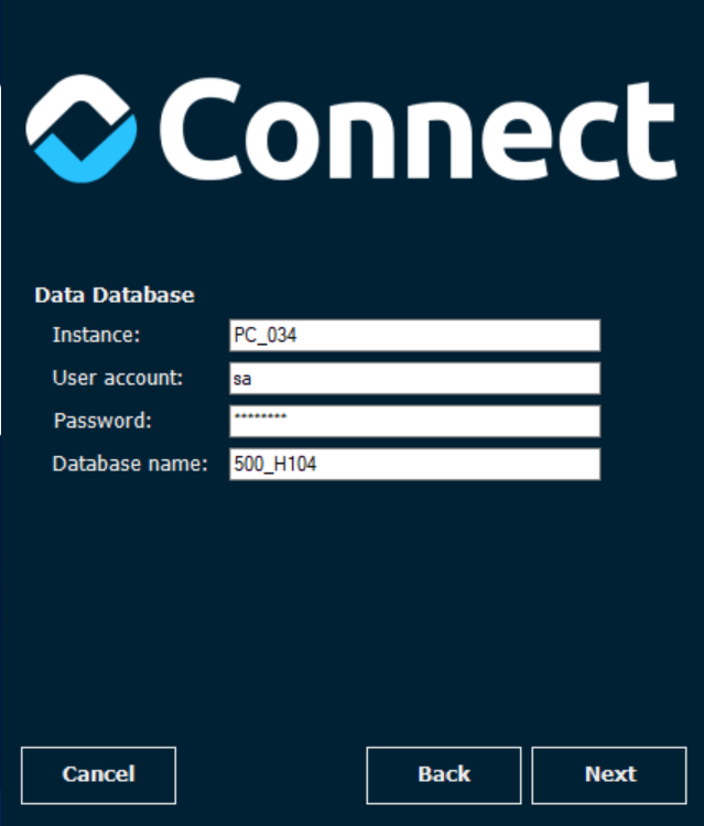 - Instance: servidor donde estará la base de datos de configuración. Por defecto propone localhost, sin embargo no es aconsejable usarlo para apuntar a la instancia predeterminada. Esto es, si el equipo tiene nombre se debería cambiar por el nombre del Equipo, y si la instalación de SQL Server tiene varias instancias, sería necesario definir tanto el nombre del equipo como la instancia.