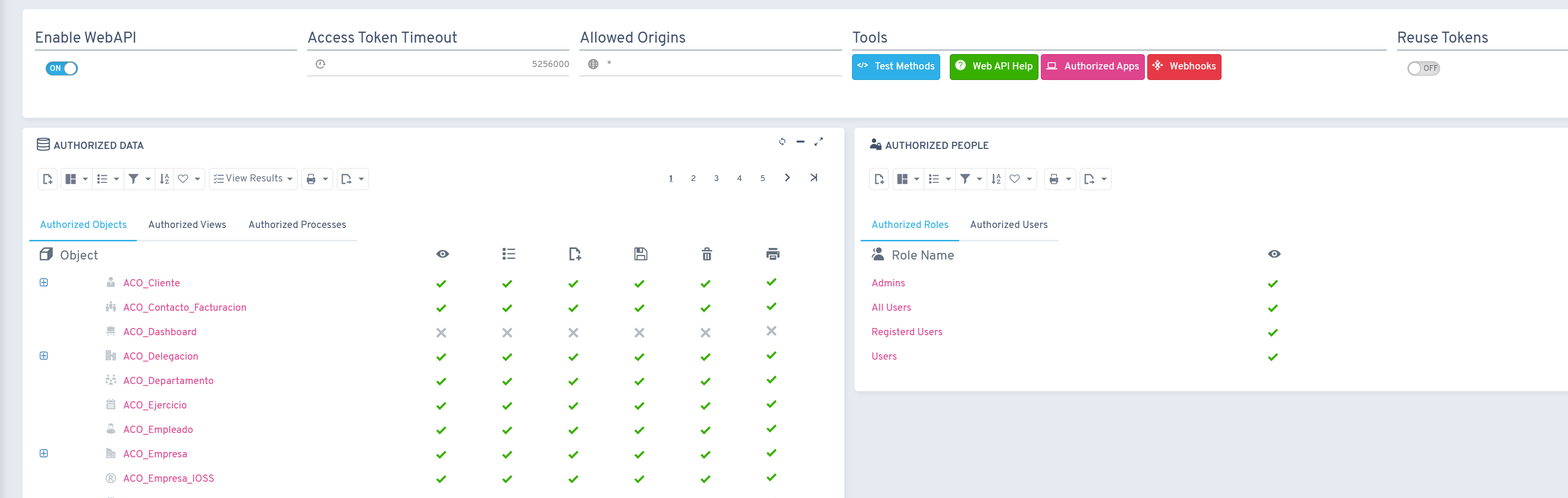 Este mantenimiento constituye el punto central de acceso para administradores y desarrolladores que necesiten definir, revisar o probar los objetos y procesos publicados hacia aplicaciones externas.