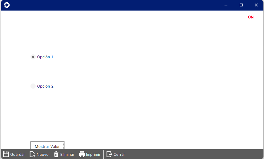 Es importante tener en cuenta que los controles CntBotonOpcion se agrupan por contendor, por lo que todos aquellos controles agrupados en el mismo panel pueden mantener únicamente uno de los registros a Value = true.