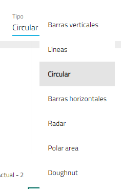 Los gráficos del dashboard pueden mostrarse en distintos formatos de visualización. Cambiar el tipo de gráfico permite adaptar la información al modo en que resulta más clara y útil.