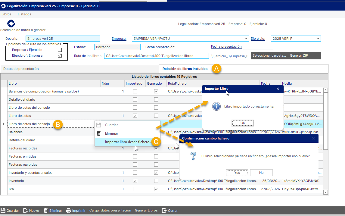 | Libro de Actas | Importado | Actas de juntas de socios. Al menos una obligatoria por ejercicio. |